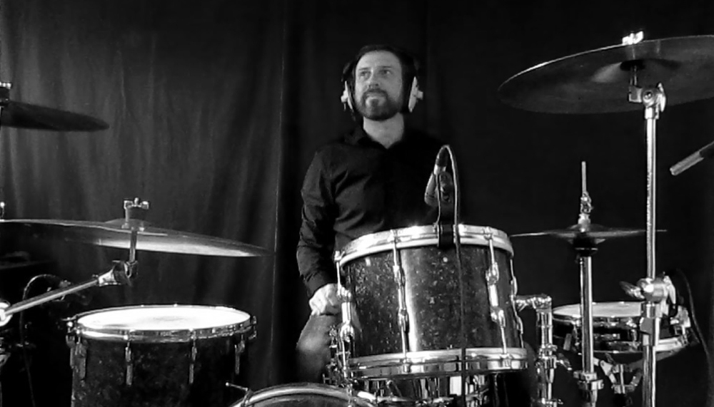 Drumming info: My usual drum setup for recording is a vintage Premier birch wood kit with a 20 x 14 kick drum, 12 x 8 rack tom and 16 x 16 floor tom. Sometimes I use a larger 24 x 14 kick drum of the same make and series. My main snare drum is a Sonor D505 14 x 5.75 seamless steel shell and my side snare is a Pearl 13 x 3 maple piccolo. Having tested out different shell types (woods, metals) and sizes, this particular setup suits my live room best for most situations. I also have a Sonor Phonic beech wood kit with a 22 x 14 kick, 13 x 9 and 14 x 10 rack toms, 16 x 16 floor tom plus additional drums and percussion to hand. I play Remo heads. I may combine drums or have separate A and B kits set up, it all depends. My cymbals have been selected for their versatility and tonality and cover a range of styles. I use Paiste 13″ Dark Signature hi-hats, a 20” Giant Beat crash, 20” 2002 ride and 18” Sabian Paragon crash, plus other cymbal types and sizes.